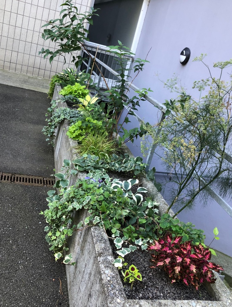 Ganz vorne habe ich Koleus gesetzt, weil Clematis Arabella noch klein ist.