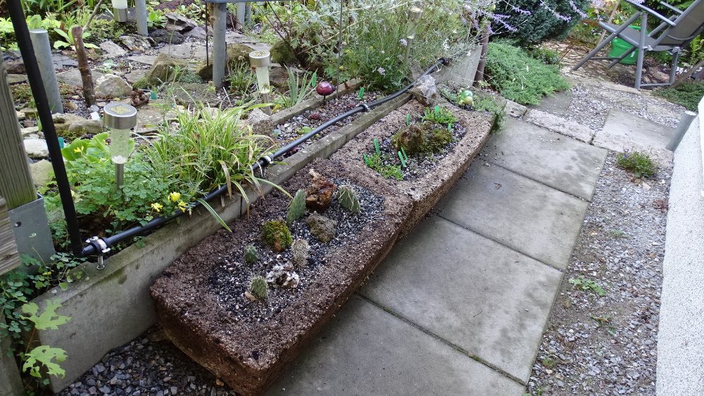 Als ich heute vom Trog stand, war ich sehr zufrieden, wie die Pflanzung sich entwickelt hat. Die Deutzie werde ich aber doch durch Acer ersetzen.