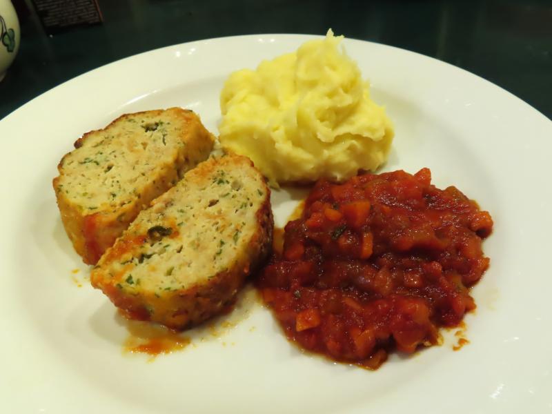 Hier gab es einen faschierten Braten alla bolognese aus Hendl (Kapern, Zitronenschale und -saft, Petersil, Parmesan, gut Pfeffer), dazu Erdäpfpürree und Krauthäuptlsalat. Lange nicht gemacht, sehr gut :)