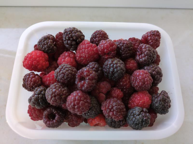 Ich hab grad wieder vierhundert Gramm Himbeeren geerntet.