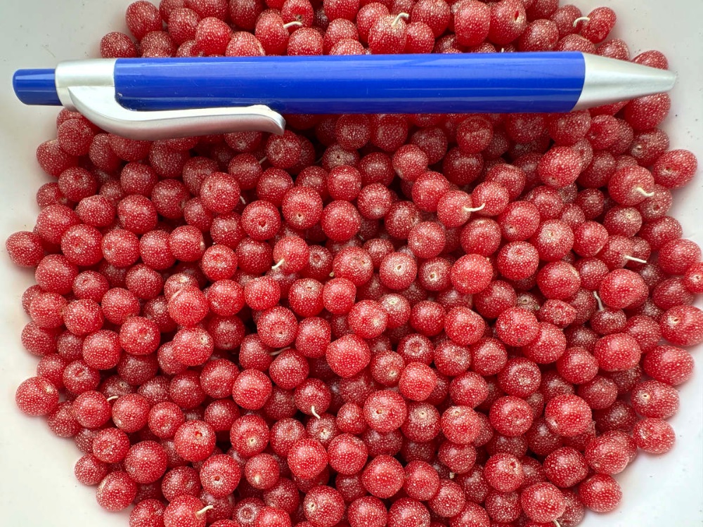 Die sind grösser dieses Jahr und auch sehr zuckerreich: Schirm-Ölweide, heute ein paar Kilo geerntet, haben 75° OE.