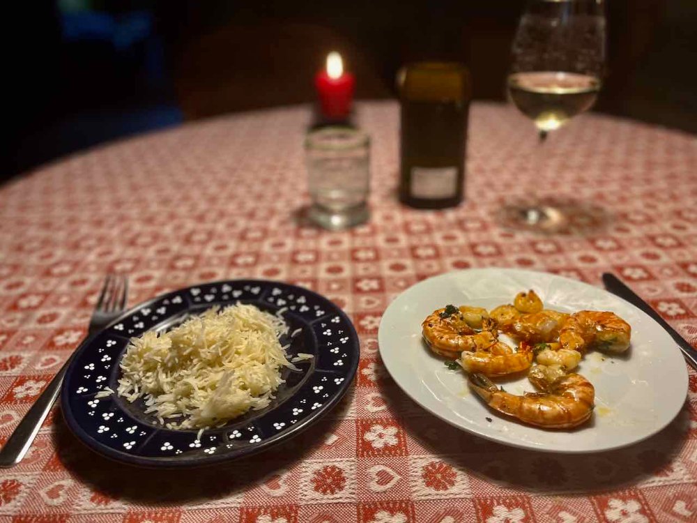 Heute auch Garnelen: Black-Tiger-Garnelen gebraten sowie Basmatireis "Imperial" mit Reisparfum und Butter gedämpft