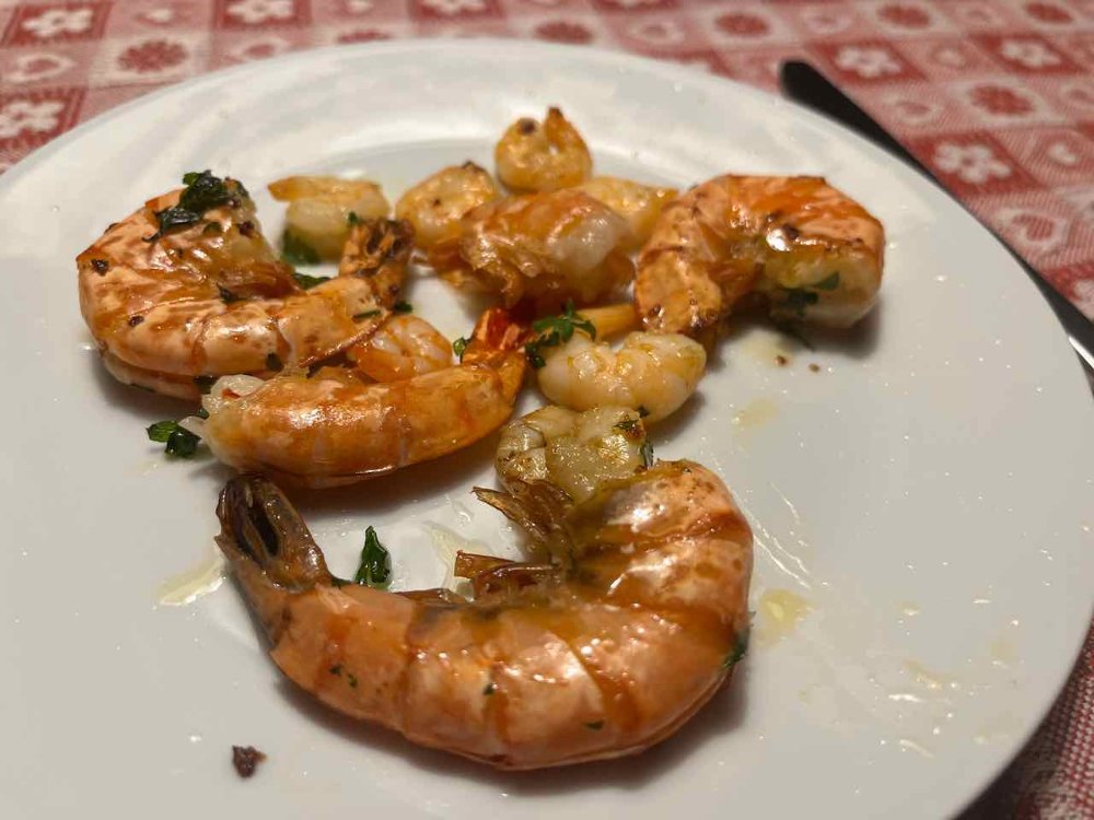 Black-Tiger- und Bio-Garnelen mit Knoblauch, Chili und Petersilie gebraten und mit Sherry abgelöscht