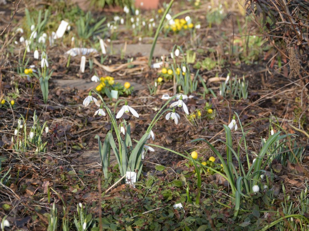 Mein Lieblingsbeet im Februar. Ein buntes Durcheinander verschiedener Frühblüher...