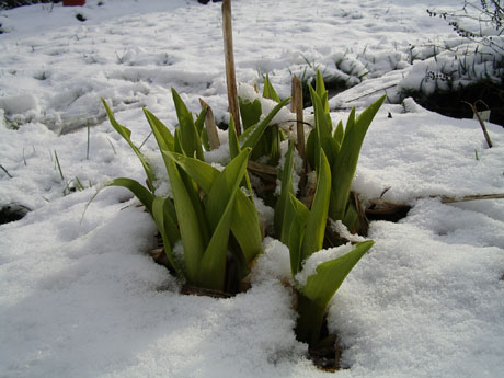 Ich kann leider nicht in diesem Thread Fotos von meinen Hems vom Sommer zeigen, da ich da noch keine Digitalkamera hatte. Aber hier ein ganz aktuelles Foto von heute Vormittag - eine Fata Morgana im Schnee 8)Eigentlich ist die Sorte dormant, aber sie ist inzwischen schon mehr als 10 cm ausgetrieben (wie viele andere Sorten auch). Wenn ich das richtig überlege, ist sie eigentlich gar nicht ganz weg gewesen.