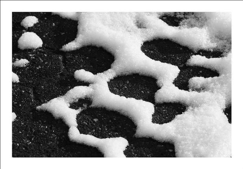 Da ist man ein paar Stunden mal nicht im Forum und schon finden sich die schönsten Bilder ein Wilde Möhre, Schneewellen und das allererste Bild gefallen mir wirklioch gut. Dein Mentor, liebe Evi, muß ja auch noch leben von wegen Kritik;D! Schneewellen könnte auch in SW interessant aussehen.Ja, und wie entstand das Yin-Yang?Bei meinem letzten Sonntagausflug - die meisten Bilder kennt Ihr ja vom "Zauberwald" - wandere ich auch an steilen überhängenden Buntsandsteinfelsen (alpine Schwierigkeitsgrade für Kletterer!) vorbei. Unter deren Überstand am Boden hat sich die Schneegrenze ergeben. Der Punkt könnte eine Stelle, wo Eiszapfentropfen vorher gefallen waren sein oder ein Stein. Beide Stellen waren offensichtlich kälter als die Erde drumherum!Ein schönes Werk der Natur. Und ich habe sogar ein Bild- leider nicht so übersichtlich - mit einem weissen Schneepunkt im erdigen Teil! :DMir ist später noch eine "Schneefischschule" begegnet