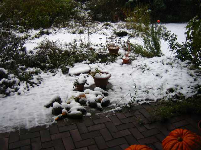 Meine Herbstkrokusse (erst dieses Jahr in den Topf gepflanzt) fangen an zu blühen! Und die kleine rosa Margerite hört noch gar nicht auf Trotz Frost und Schnee letzte Woche (siehe nächstes Bild).