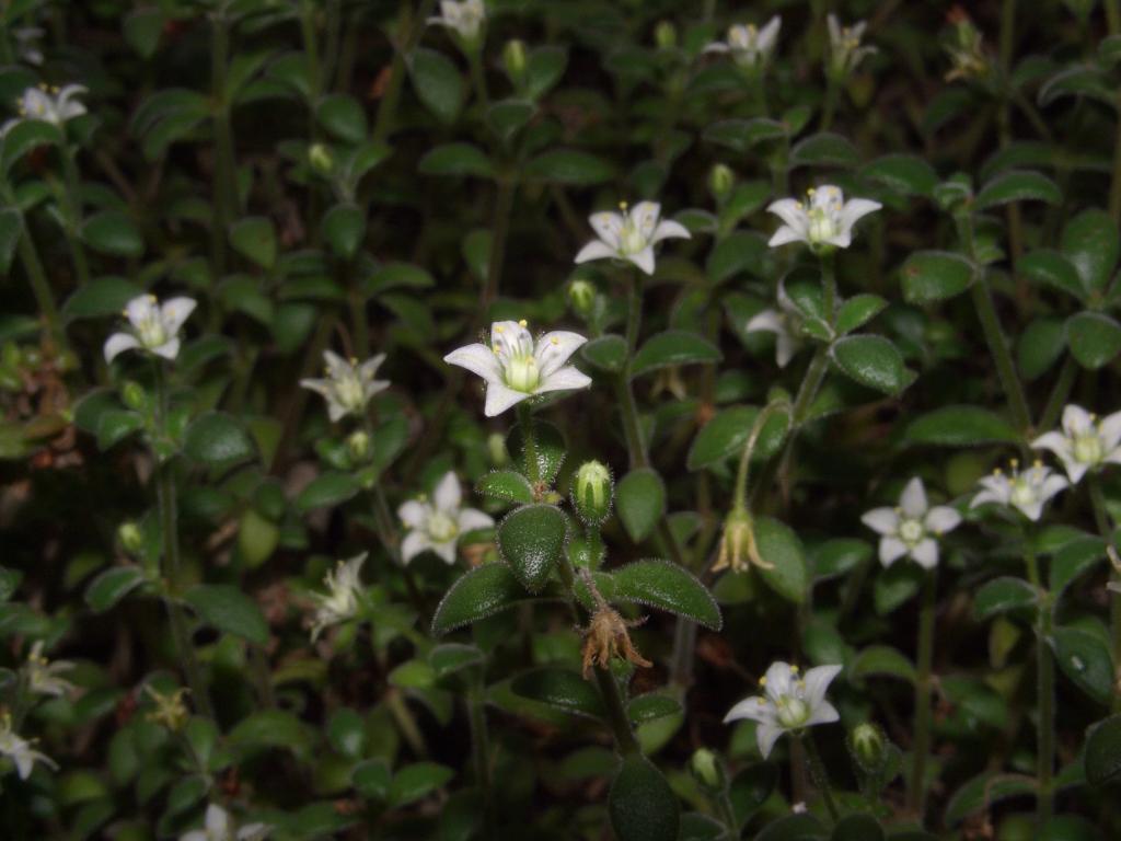 ... ein Teppich mit kleinen weißen Blüten: Crassula browniana.