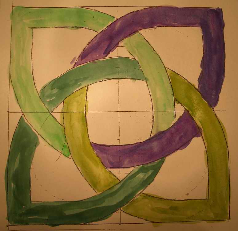 Mir gefällt dein Knoten auch ausnehmend gut.Um ihn auf den Boden zu bringen, legt man wohl am besten ein langes Seil aus. Und rückt dann so lange daran rum, bis es der Wunschform entspricht. Dann kann man mit Mehl oder Kreide markieren.Abr an welchen Stellen, willst du die Farbe wechseln?LG Lilo