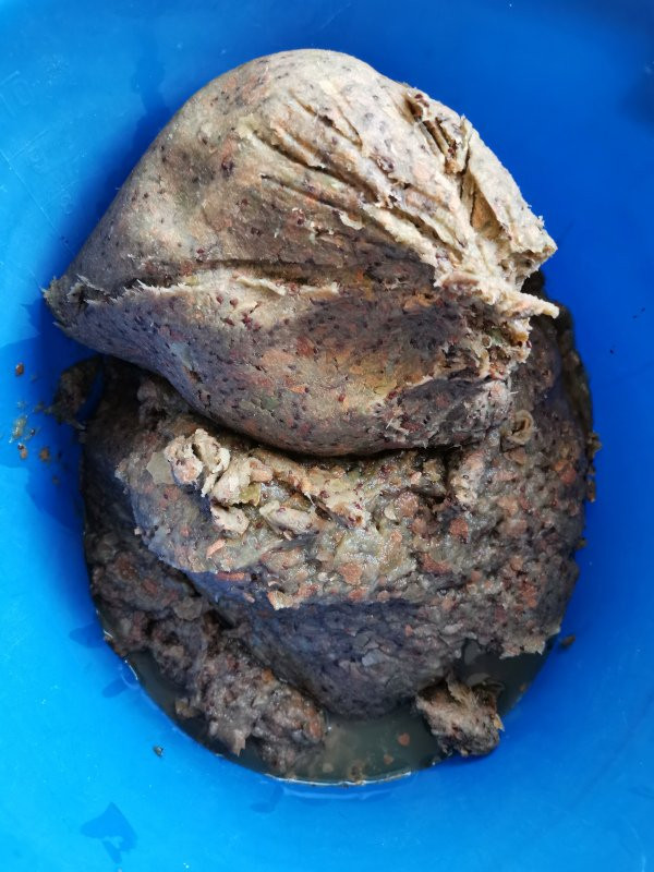Der Presskuchen kann sich sehen lassen. Dafür dass nur mit der Hand gearbeitet wurde, relativ trocken. Zumindest am Schluss, als die Technik klarer wurde. Wenn man weiß wie, ists eigentlich halbwegs entspannt. Zeit und Bewegung ist wichtig.