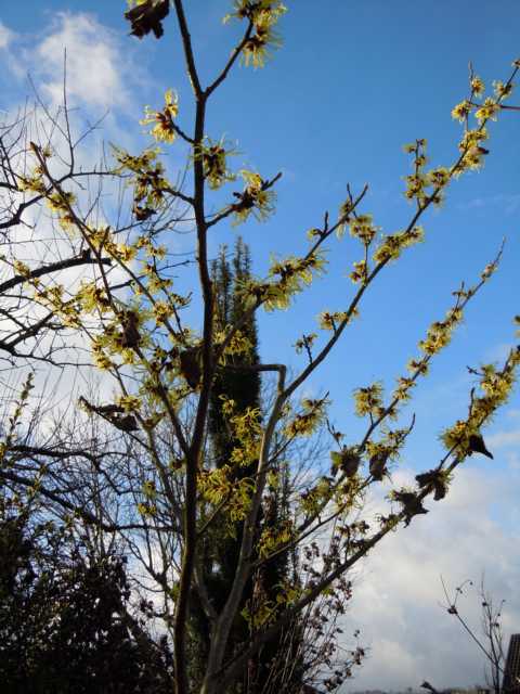 Wird wohl 'Westerstede' sein. 'Arnold Promise' wächst vasenförmig.@Bristlecone kann dich beruhigen, bei mir blüht 'Westerstede' auch. Gerade beim Schnelldurchlauf im Garten gesehen. Schöne Grüße aus der selbigen Stadt...und das:Hamamelis "?" meine früheste. Auf dem Schildchen stand entweder "Westerstede" oder "Arnold Promise"