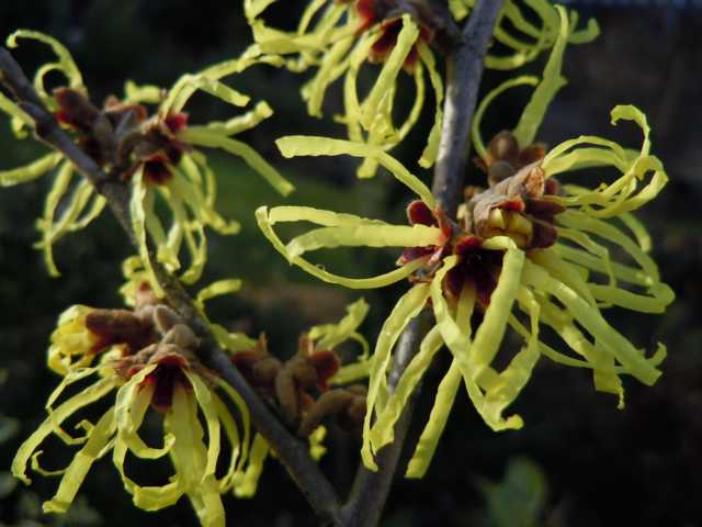 Die ersten Hamamelis-Blüten zeigen sich.