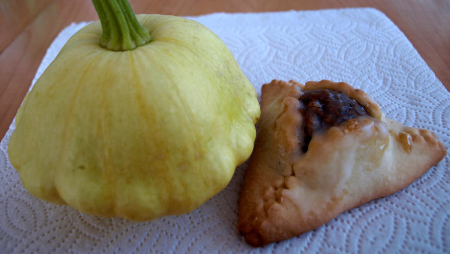 Nachtrag zum besseren allgemeinen Verständnis - bitteschöön:Links, frisch aus dem Garten, Patisson, auch UFO-Kürbis oder Bischofsmütze genannt.Rechts Pfaffehüetli, frisch vom Beck.