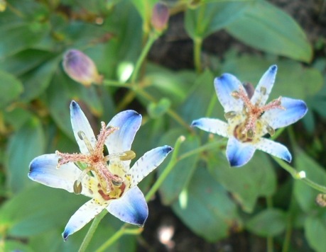 Letzte Woche fielen mir auf dem Weg zu einem Außentermin vor einem Blumengeschäft mehrere Töpfe mit sehr blaublühenden Tricyrtis auf. Sofort erinnerte ich mich daran, dass ich einige Tage zuvor auf dem Berliner Staudenmarkt ebensolche Pflanzen sehr bewundert hatte, mein komplett geleerter Geldbeutel aber einen Kauf nicht zu ließ. Auf dem Weg zurück ins Atelier standen alle Töpfe noch immer da, aber nur, bis ich das Geschäft betrat. Das Ergebnis steht jetzt in meinem Garten. Da der Topf gut durchwurzelt war und reichlich Ausläufer nach einem Ausweg suchten, wird ein Teil demnächst noch in einen anderen Garten wandern
