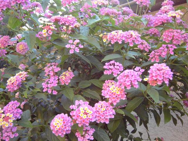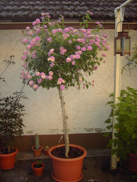 Ui, die blaublühenden Krötenlilien sind sehr schön, oile! Hab sie in blau noch nie gesehen.Mein aktueller Star ist meine Lantana camara, die ich 1997 für 2 DM als kleines Balkonpflänchzen gekauft habe. Hab sie mir dann langsam als Hochstamm gezogen und heute ist sie fast so hoch, wie die Teppichstange neben ihr.