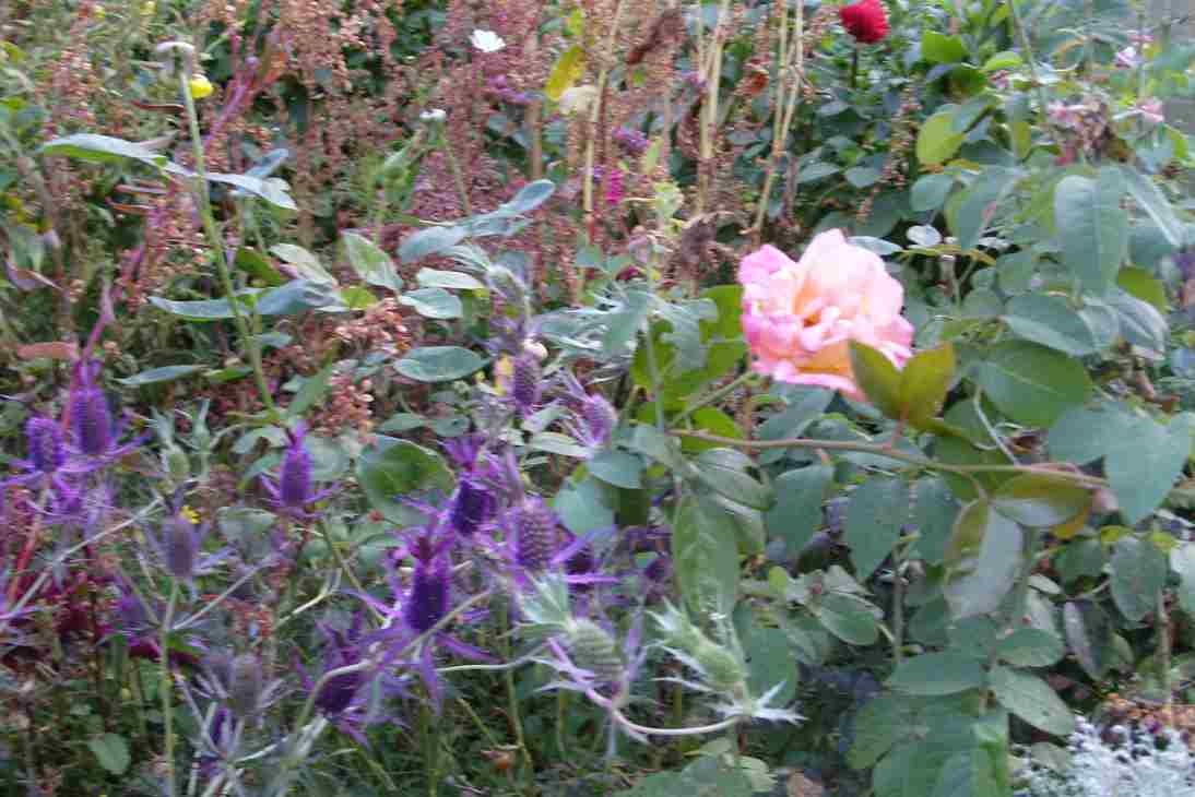Vor allem, wenn die Melde dann noch hochrot dazwischendurch turnt.Die Farbe des Eryngium ist wirklich... lasziv.