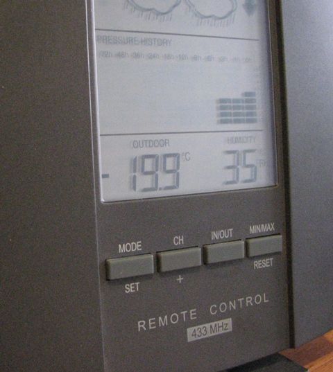 Die Wetterstattion des deutschen Wetterdienstes auf dem kleinen Feldberg im Taunus meldet bei Wetteronline aktuell -19,4°C.Bei uns hingegen muckelige -16,4 auf der Fensterbank direkt am Flurfenster.