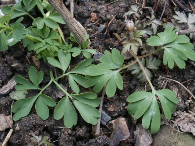 Der nächste Lerchensporn ist als C. marschalliana gekauft worden - Es ist eine im Vergleich zu anderen Knollencories riesige Pflanze - fast so groß wie C. popovii -, und mit viel größerem und gröberen Laub, als es C. solida und die ebenfalls gelbblühende C. bracteata aufweisen. Ich vermute, es ist eine gelbe Form von C. cava.