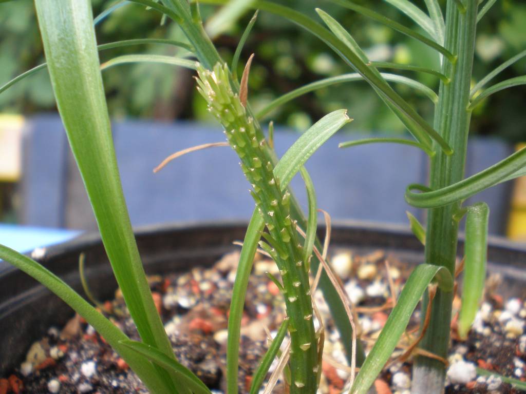 , abgesehen von den schmalen Blättern an der Abzweigung der einzelnen Blütenstiele.Das haben die Citronella auch. Da ich das Merkmal noch in keiner Beschreibung gelesen habe und die Citronella ja auch leichtlinii Ahnen hat ist das kein wirkliches Unterscheidungsmerkmal. Du hast auf jeden Fall einen anderen Klon als ich bis jetzt gesehen habe.Wenn dann deine andere blüht und die oben kurze Blätter hat fast wie bei henryi, kannst Du mal einen Bestäubungsversuch machen. :DDie einzelnen Blütenstängel sind bei den leichtlinii die ich bis jetzt gesehen habe so schön lang wie bei Dir und die Blütenblätter sind da auch so unten etwas breit wie bei dieser. Die Citronellas die ich habe haben entweder Bulbillen dann ist die Blüte so ähnlich wie bei leichtlinii (meiner Meinung nach eine andere Sorte) oder sie sind stärker zurückgeschlagen und etwas kleiner (die echte wie ich glaube) und ohne Bulbillen.