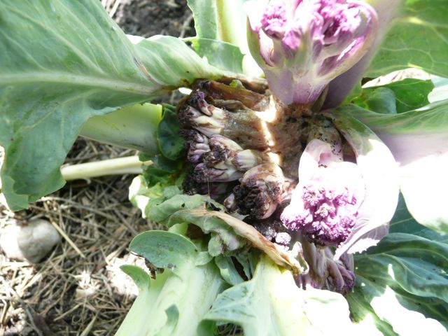 Und bei den Brokkolis fehlt der Vegetationspunkt. Bei den Seitentrieben, auf die ich gehofft hatte, ist es dasselbe. Schneckenfrass? Oder was meint Ihr?