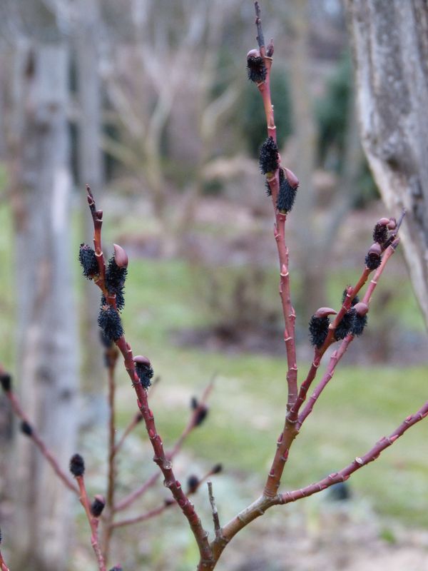 Salix daphnoides 'Continental Purple' hat interessante Krällchen ausgefahren