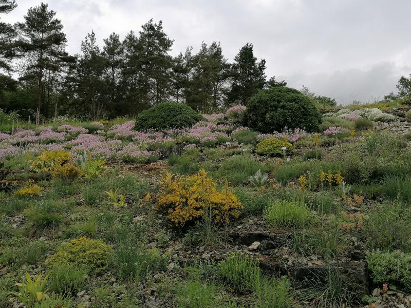 links in der Spitze ist Onosma echioides, selbst hingesät, wie überall in der Pflanzung