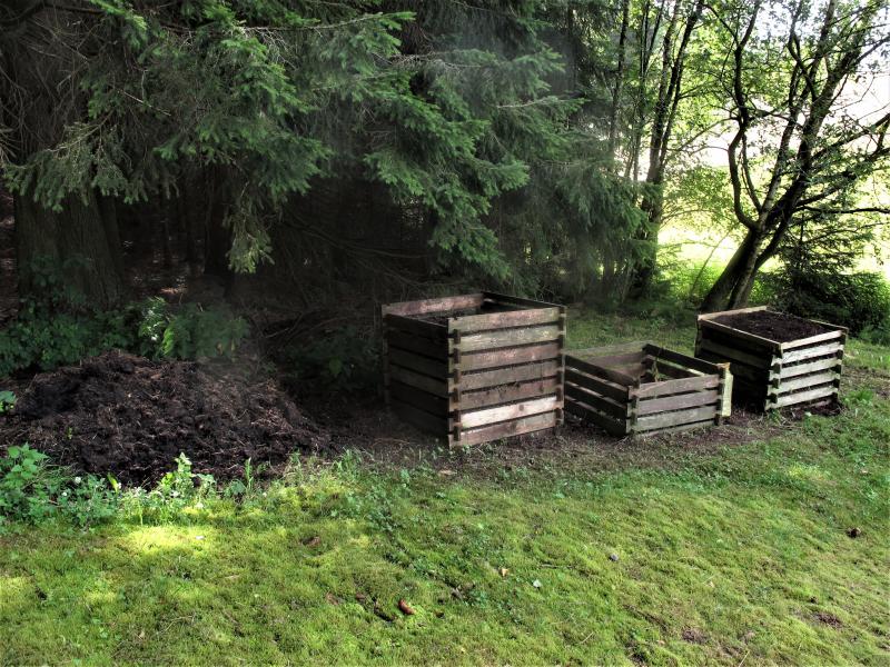 Zur Zeit habe ich drei Kompost Stellen, werde sie aber auf eine reduzieren, da der neue größere Rasentraktor einen 560l Grasfangkorb hat, da kann ich alles auf einen Haufen karren.