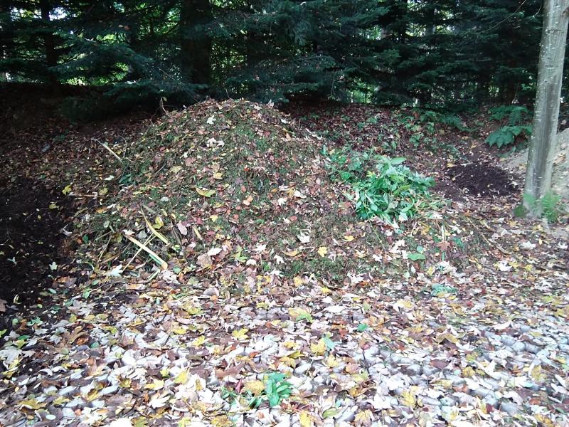 Da es noch viel Laub drin hat, einen Komposthaufen geschichtet.