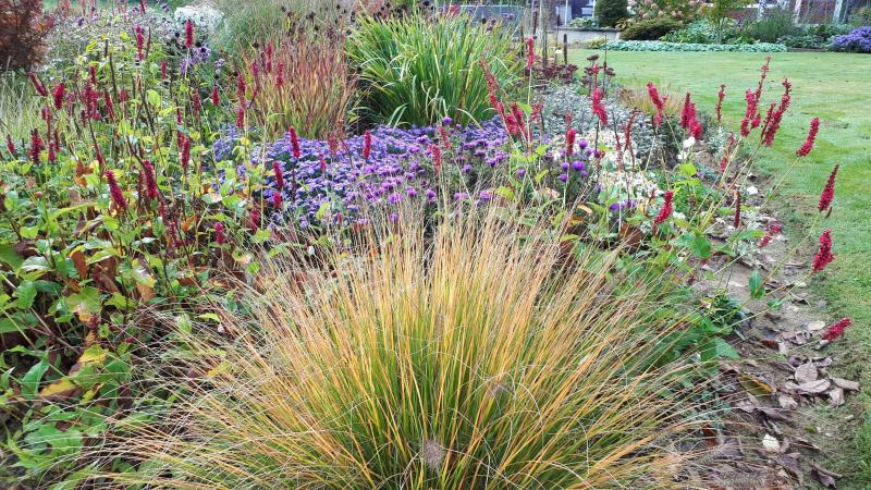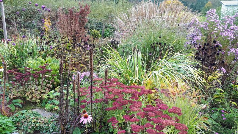 Hier ist es seit gestern plötzlich deutlich kälter geworden. Brrrrrr... :-X Beim Rundgang fällt auf, daß aber auch Stauden erstaunliche Herbstfarben hervorbringen können! Richtig satt und opulent kommen sie nun in knalligen Farben daher... ein kleiner Überblick. :o