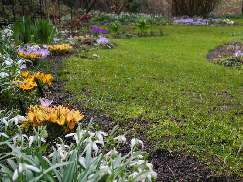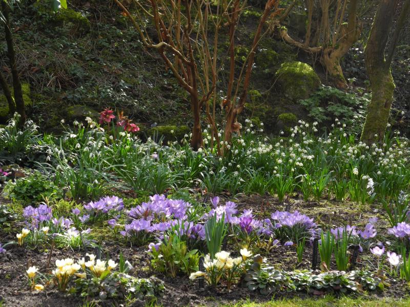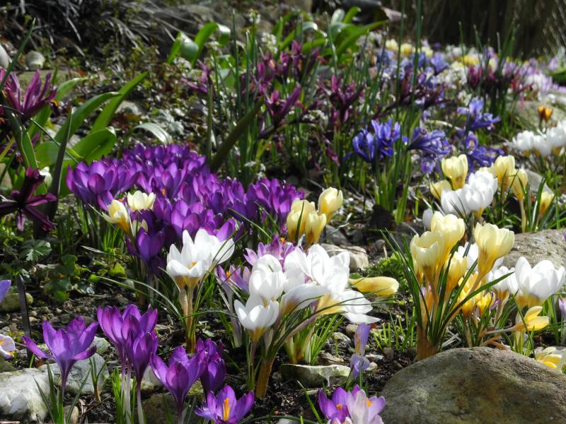 Hier spielt sich die Krokusblüte "nur" in allen Beeten ab, rund um das Haus.