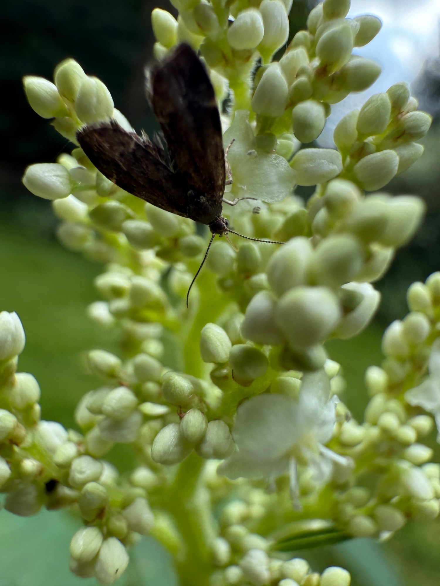 Die unscheinbare Rundstirnmotte Anthophila fabriciana auf Aconogon Johanniswolke.