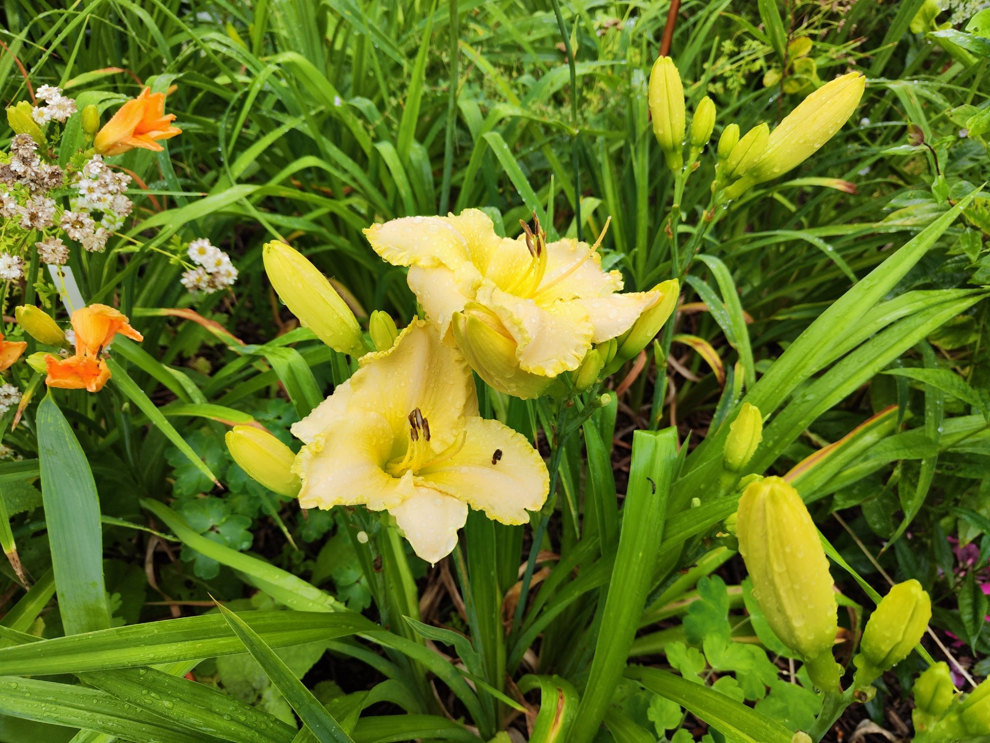 Namenlos, lange blühend (mit fraglicher Lilie 'Citronella' im Hintergrund).