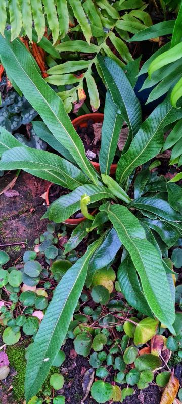 Eine weitere Überraschung: Niphidium (Polypodium) crassifolium hat die letzten kalten Nächte ebenfalls unbeschadet überstanden. Diese Art ist sehr selten und dann ausschließlich für Indoorkultur erhältlich. Meinen habe ich zufällig bei einer der großen Ketten inmitten der üblichen Nestfarne entdeckt. Es gibt Aussagen, dass diese Art sogar bis -10° überstanden haben soll.