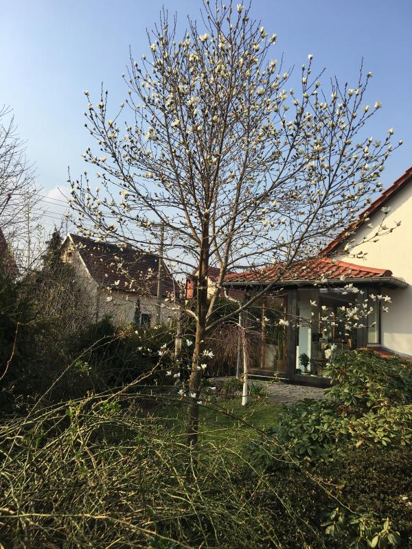 Die M. stellata blüht seit heute, allerdings steht sie auch sehr geschützt.