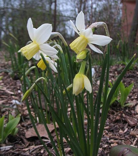 Mit mehreren Sorten gibt es relativ lange Narzissen im Garten.Die erste hier ist immer Carlton, auch Rip van Winkle und verschiedenen Namenlose blühen bereits im März. Bild Bild Bild Bild