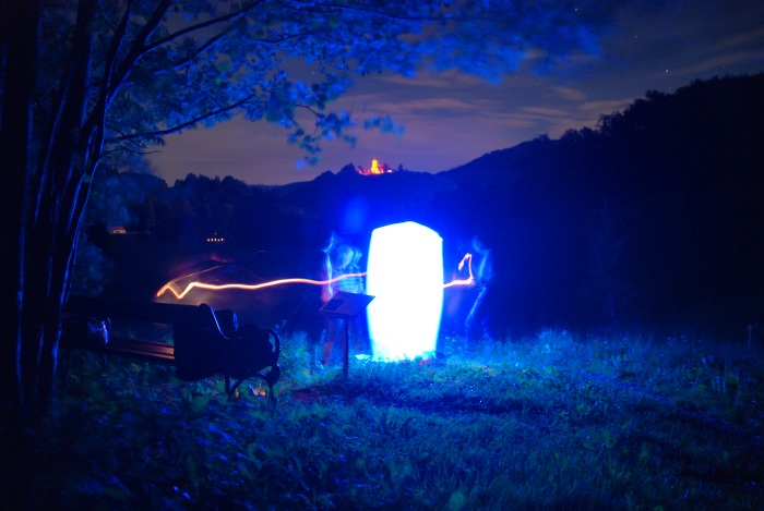 birgit, ich habe deine Bilder erst jetzt entdeckt. Auch mir gefällt das äußerst geheimnisvolle 8. Bild am besten!felicia, dein Bild finde ich sehr schön. Hast du mit Stativ gearbeitet? Hast du die Hosta direkt angeleuchtet? Vielleicht wäre ein Bild von weiter weg und mit weniger direkter Beleuchtung auch interessant (andere Zweige die ins Bild hängen, mehr Lichtstimmung...).Ich habe noch ein Foto von letztem Monat, ich war dabei, als nach Schmetterlingen geleuchtet wurde. Dazu wird ein Leuchtturm aufgestellt, der Nachtfalter anlockt. Ich musste trotzdem sehr lange belichten und wegen des leichten Windes sind Teile der Umgebung (Baum, Gras) verwischt.