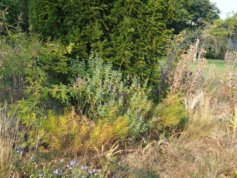 Allgäustauden liefern mehr oder weniger blühfähige Bastarde mit Amsonia tabernaemontana, die ich Amsonia Hubrichtii mit einem Gruppennamen kennzeichne. Es ist ein Sämlingsschwarm. Am schönsten waren die Exemplare von Annemarie Eskuche. Die blühten im Folgejahr nach der Pflanzung prächtig und hatten auch schon die schöne Herbstfärbung.