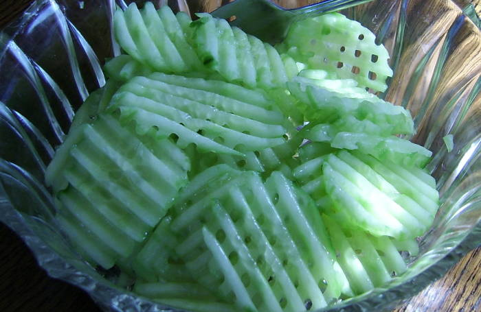 Dazu gabs einen Gurkensalat mit Löcher