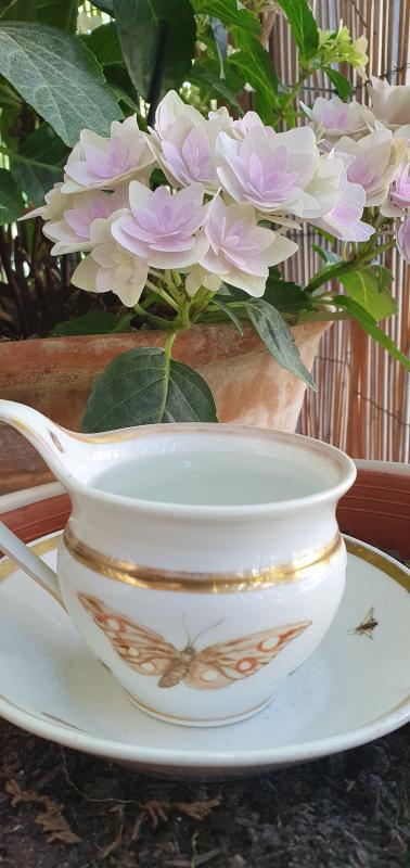 Hier eines meiner spärlichen Schätzchen, das Abschneiden der Hortensie hab ich aber nicht geschafft. Daher nur als Collage, sozusagen.