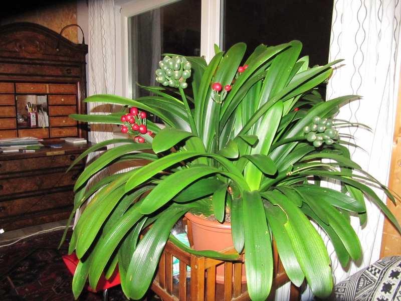 Könnte es sich bei der zuerst gezeigten Klivie um eine gelbblühende handeln?Bei mir werden in diesem Winter/Frühjahr einige aus Samen gezogene Klivien zum ersten Mal Blütenstände entwickeln. Es müssten eigentlich eine ganze Reihe davon gelbe Blüten haben. Ich bin schon sehr gespannt und kann es kaum erwarten. Diese Samen sind weit gereist und stammen aus Südafrika, USA und Neuseeland und ich hoffe, dass mir die Genetik keinen Streich spielt. Nicht dass die Pflanzen dann ganz normal orange blühen.Viele GrüßeElke