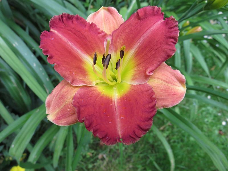 meine recht hübsche unbekannte (fehllieferung) hemerocallis. sie wächst auf der seite hinter dem teich, weswegen man sehr heranzoomen muss um sie zu fotografieren...sorry