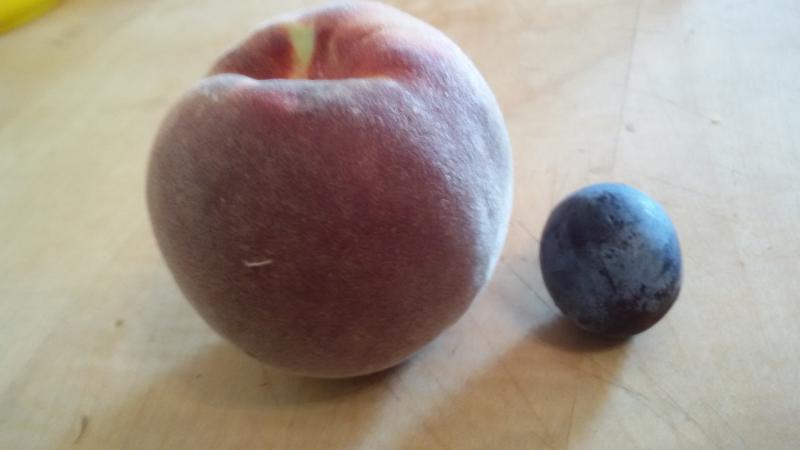 Ein Riesending, Hargrand! Ist das daneben eine Zwetschge? Die Pfirsichbäume, welche die drei gezeigten Sorten hervorgebracht haben, stehen zwar an der Südseite des Hauses, aber leider, leider ohne Dachvorsprung (ich hab' das Haus nicht konstruiert, sonst hätte es einen) - bei gut 1300 mm mittlerem Jahresniederschlag. Der unbekannte Gelbfleischige hat mal etwas Gummifluss, aber sonst ist das bislang (*klopf auf Holz*) auch bei den völlig freistehenden im Garten und auf der Streuobstwiese kein wirklich relevantes Thema (hoff' das bleibt auch so).