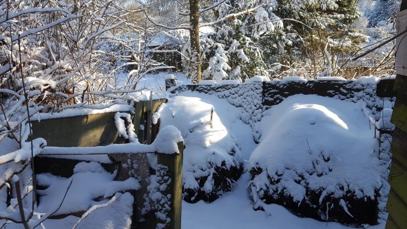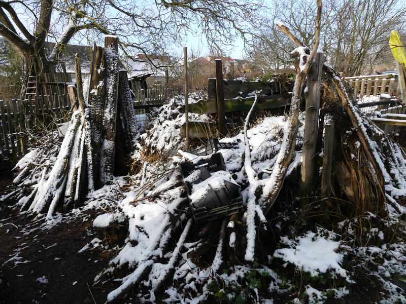 Es ist ein Kompost Arbeitsplatz der vom Schnee in eine a n s c h e i n e n d, unvorteilhafte Ansicht verwandelt wurde.