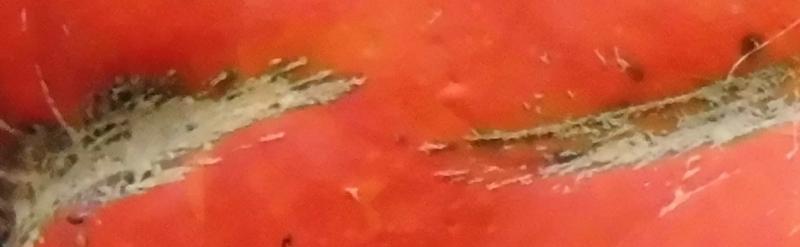 Eine verschorfte Stelle an Obst (Apfel, Kaktusfeige) oder Gemüse (Paprika, Tomate)?