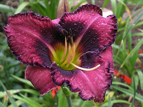 Die GRAPE FUN sieht ja bei soviel Wasser ganz hervorragend aus. Ein Regentag ist viel wert im Tagliliengarten, nicht nur, weil Taglilien genug Feuchtigkeit mögen, sondern auch, weil man an so einem Tag die Wetterfestigkeit der Blüten sehr gut beurteilen kann.