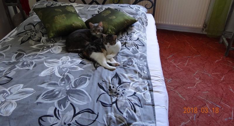Bubu verträgt sich mit allen gut. Minka meckert manchmal, geht dann aber wieder in mein Bett und Thommy und Lilli lieben sich heiß und innig. Die küssen sich ständig, wenn nicht ich geküßt werde.