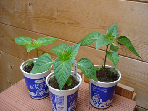 Chilipflänzchen: Lemon Drop, Anaheim, Criolla Sella (bekommt schon Seitentriebe)