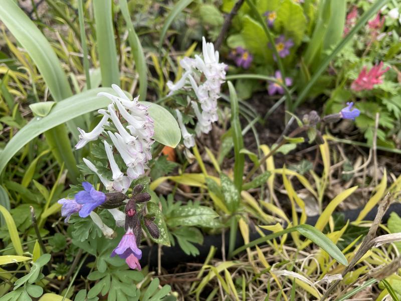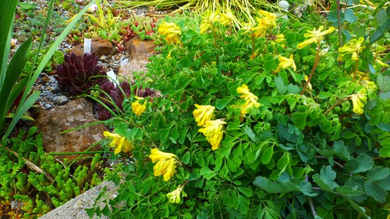 Ein mittelspäter und ein lang blühender. Corydalis ellipticarpa und C. ophiocarpa. Leider habe ich den blassgelben Typ von C. ellipticarpa verloren und auch die wenigen Sämlinge, die aus der Kreuzbestäubung mit der dunkleren Pflanze entstanden waren.