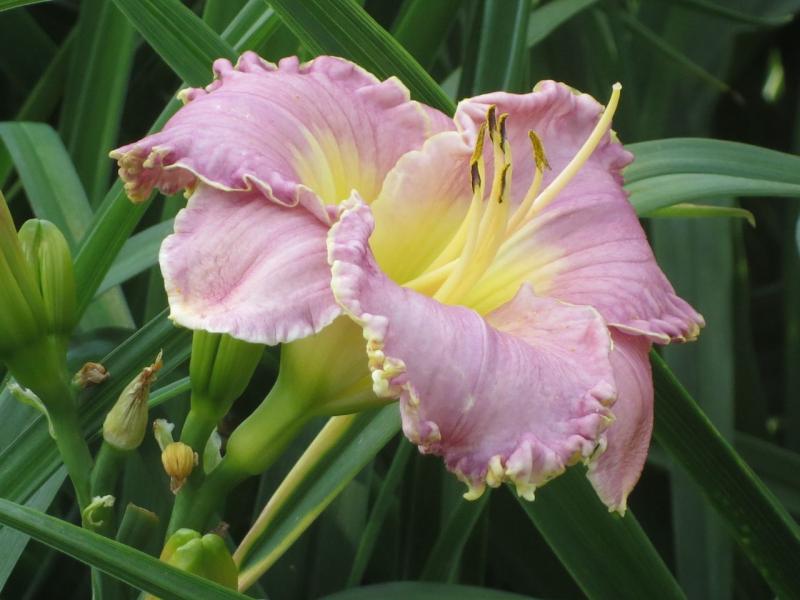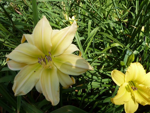 Ehe ich mit Blüten vom Taglilientreffen in Mülsen weitermache, schnell ein paar Blüten aus dem Sandgarten, wo ich getern den ganzen Tag Enkel gehütet habe.Berleyer Sweet Bianca ist immer noch das Weißeste, was ich habe.