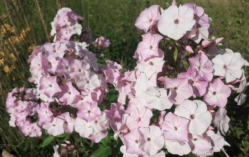 Ja, die Vermutung liegt nahe, auch wenn 'Landpartie' zwei Gartenräume weiter steht, am Ende der Allee. Im Blumengarten direkt daneben gab es mal eine Auswahl von Foerster-Sorten bzw. bei Foerster erworbenen Sorten. Von den Originalpflanzen ist so gut wie keine mehr vorhanden, Sämlinge haben das Beet erobert. Größtenteils sind sie rosa. Violettrosa, kühle fahlrosa und undefinierbar blass- bis mittelviolette Phloxe mit kleinen Blütenständen werden aussortiert, weiße fehlen leider, werden aber nachgepflanzt. Im ersten Phloxgarten sind tatsächlich ein paar schöne weiße Sämlinge aufgetaucht mit Blütenformen, wie ich sie mag. Worauf ich warte: eine Art 'Kirchenfürst' mit weißem Spiegel, Blütendurchmesser mindestens 4 cm, geschlossene Form, leichte Schale, Verzweigung ideal (Tannenbaum), Höhe ca. 130 cm, Laub dunkelgrün glänzend, Blütezeit egal. ;) ;)